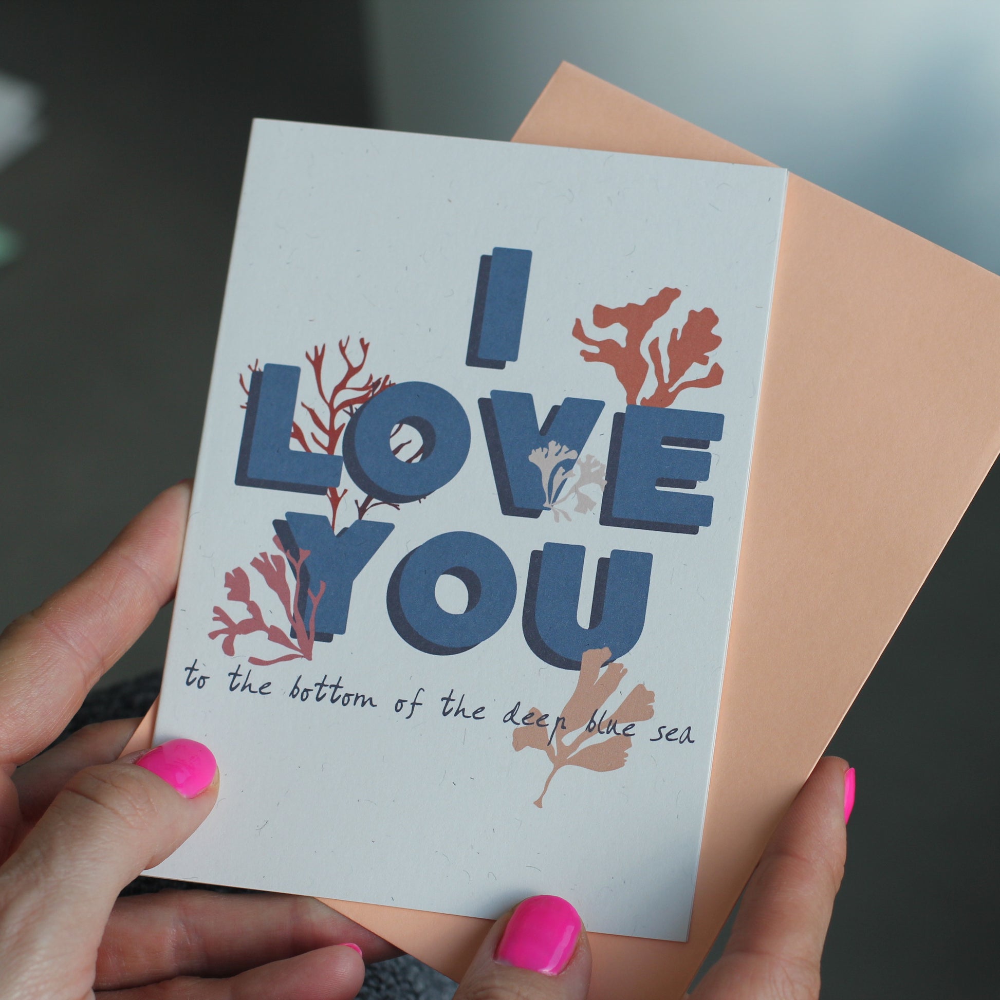 I love you to the bottom of the deep blue sea! A lovely romantic card to send to someone special, perfect for a beach wedding, a special anniversary or just because you want to tell someone you love them.
