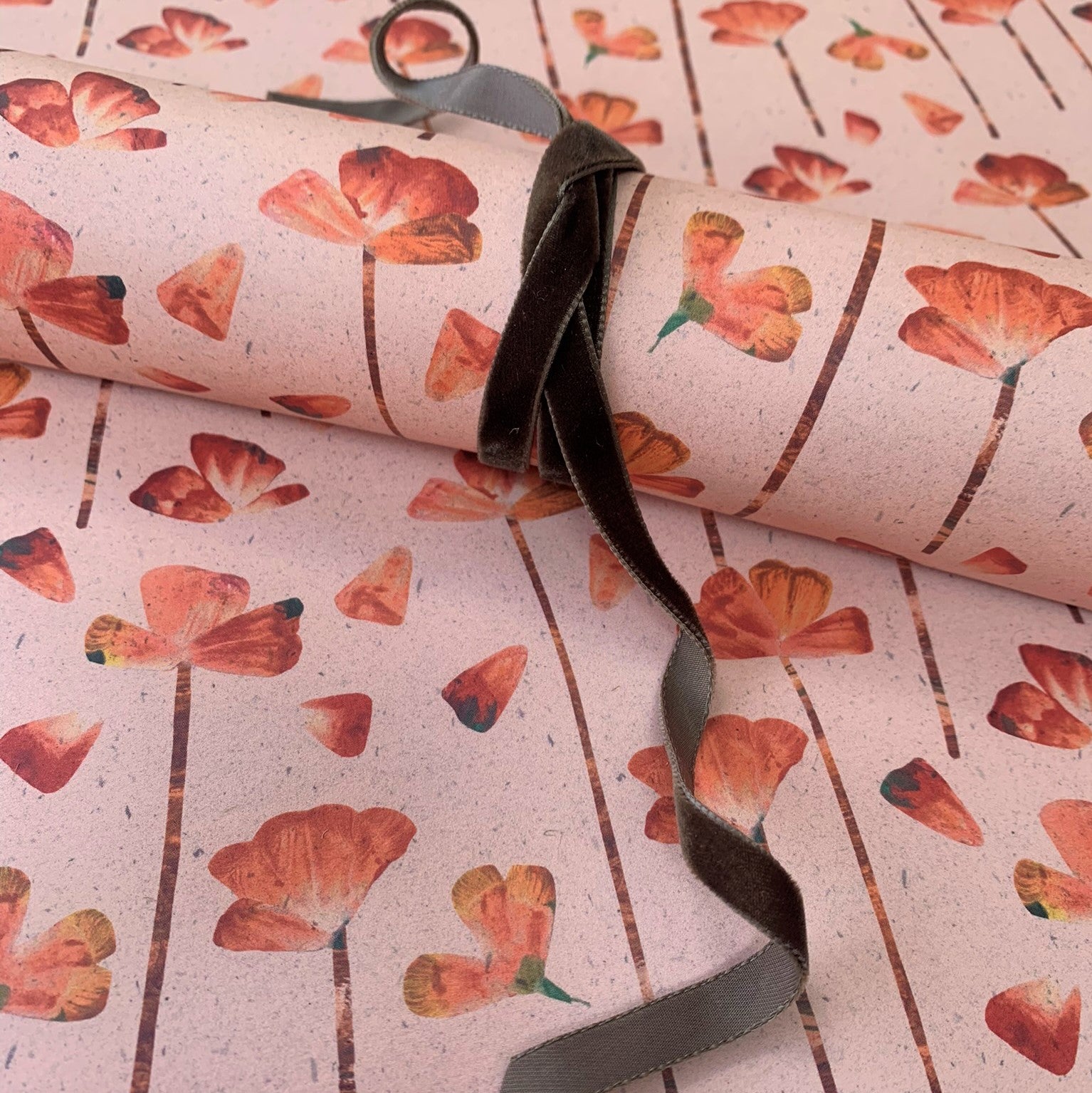 Wrapping paper set featuring sunny wildflowers in shades of rust and orange.