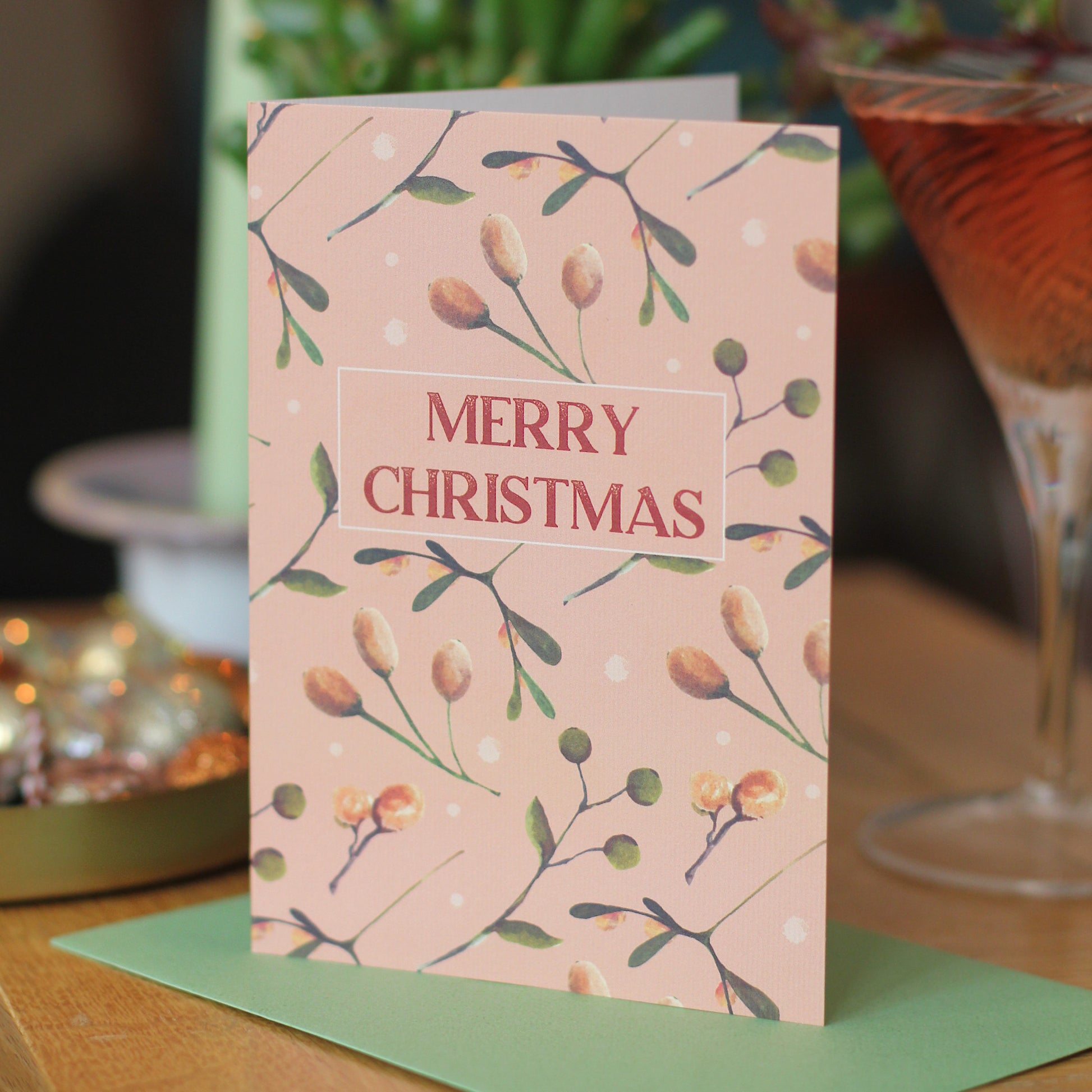 Send beautiful hand drawn botanical Christmas cards this year. These holiday cards are adorned with lovely vintage style botanical berry and mistletoe illustrations and the words 'Merry Christmas' in a stylish vintage typeface.