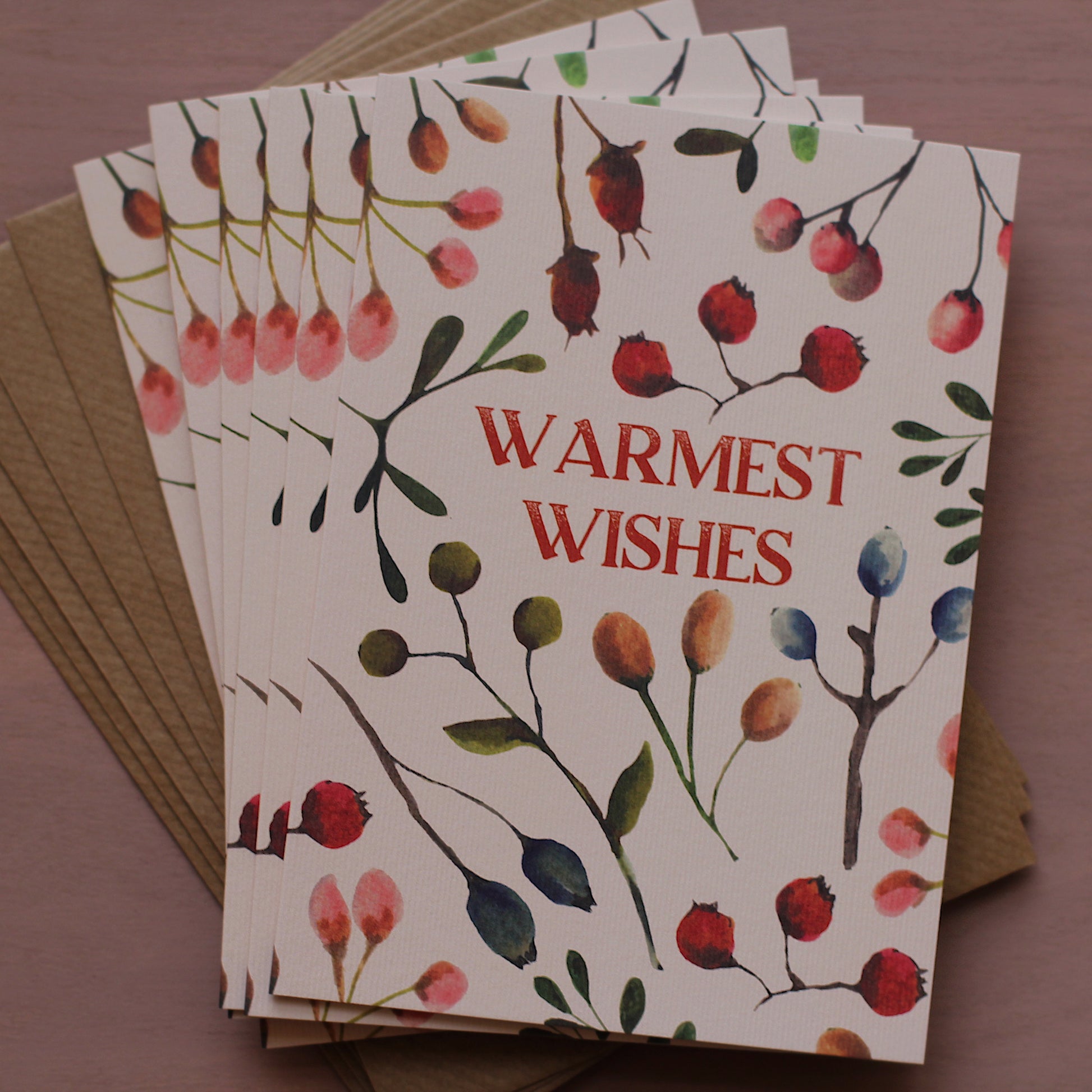 Set of 6 Warmest Wishes botanical Christmas cards