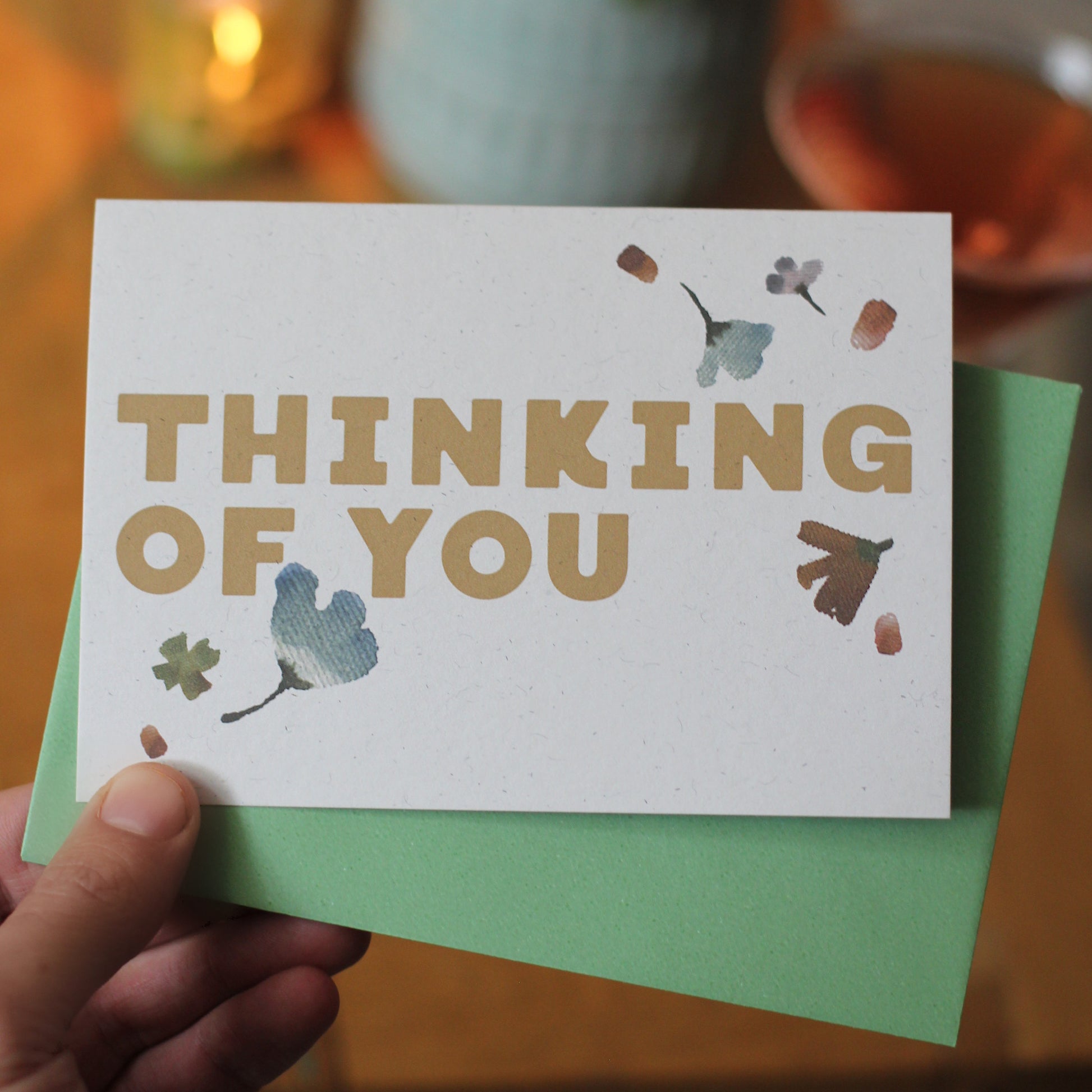 Thinking of you card, a pretty card to send someone some love or thoughtful words. Illustrated with watercolour sketches of presses wildflowers.